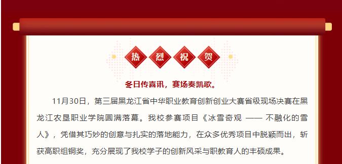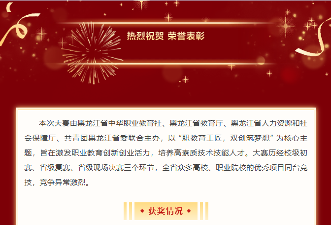 喜报 | 双创赛场展风采,职教育人结硕果——我校在第三届黑龙江省中华职业教育创新创业大赛中斩获佳绩