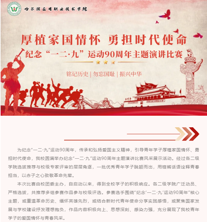 厚植家国情怀 勇担时代使命——我校纪念“一二·九”运动90周年主题演讲比赛圆满落幕