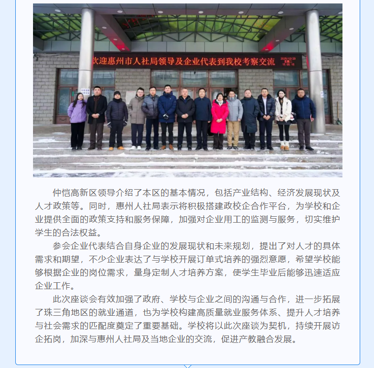 政校企三方携手,共促产教融合发展——惠州市人社局及企业代表团莅临我校考察交流