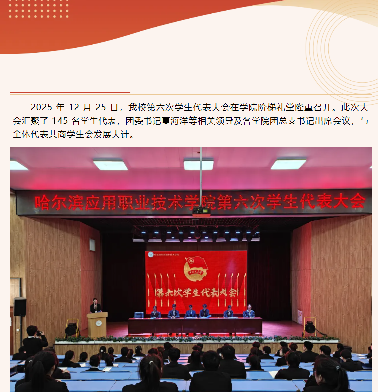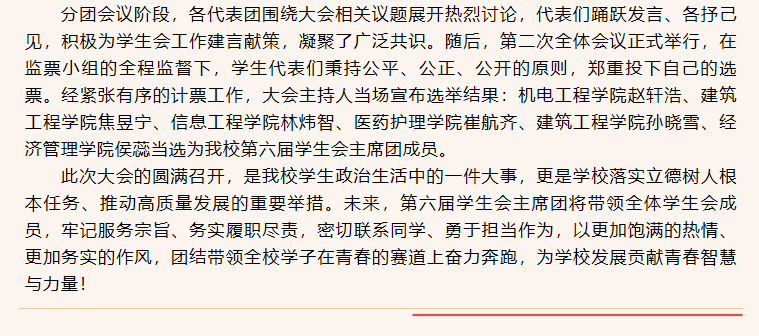 热烈庆祝我校第六次学生代表大会胜利召开