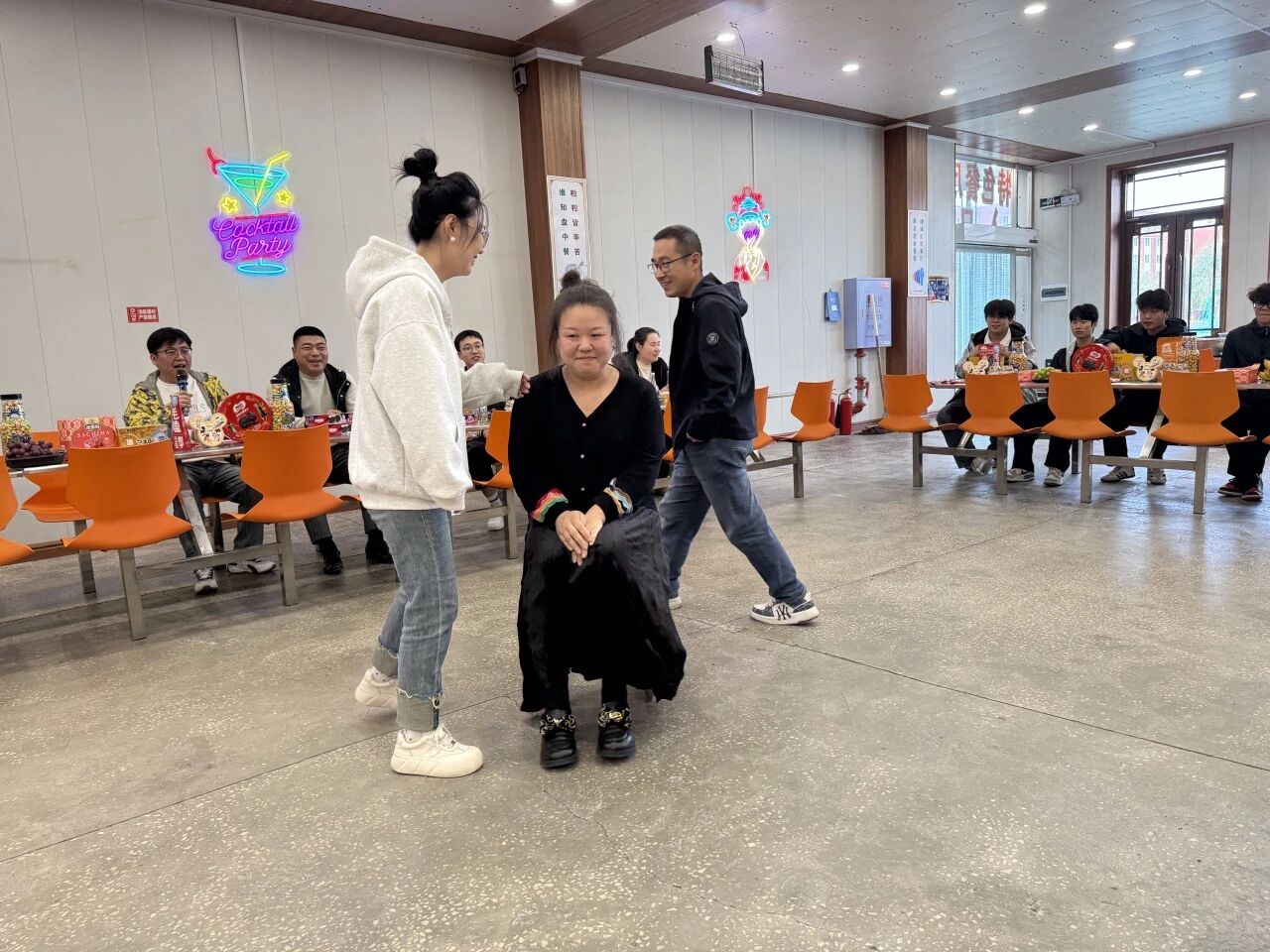 灯火可亲的餐厅里,果香与笑语交织,团委老师们精心准备的月饼、水果和茶点摆满长桌,映照着每一张期待的脸庞,茶话会由纪委书记赵天主持。