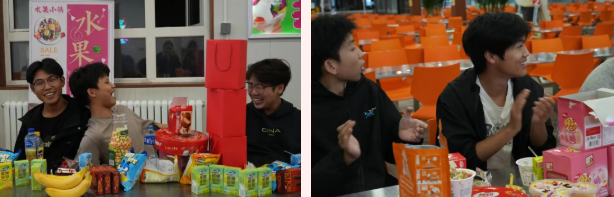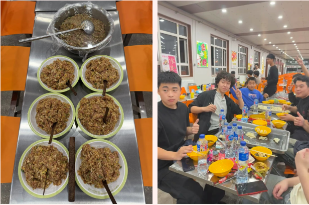 最热烈的莫过于包饺子环节。面团在指尖旋转,馅料在掌心凝聚,师生们围站桌旁,手法生疏的学生在老师手把手指点下捏出第一个“小月亮”,熟练的北方同学则秀出柳叶饺、元宝饺的绝活。面粉沾上鼻尖,欢笑漾在眉梢,一名广西的男同学捧起一只“四不像”饺子自嘲:“我这作品,主打一个真诚!”